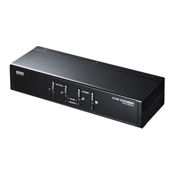 - PS/2接続とUSB接続の両方に対応したデュアルインターフェース対応のパソコン自動切替器(4ポート)。SW-KVM4UP サンワサプライ※箱にキズ、汚れがありますが商品は新品です。<特長>●1組のコンソール(キーボード・マウス・ディスプレイ)で4台までのパソコンを切り替えて操作できます。●パソコンとの接続はPS/2でもUSBでも可能です。PS/2接続のパソコン、USB接続のパソコンを混在して接続することもできます。 ●キーボード・マウスはPS/2でもUSBでも接続できるデュアルインターフェースに対応しています。マウスはUSB、キーボードはPS/2などのクロスインターフェース接続も可能です。 ●キーボードポートエミュレーション機能を搭載しています。KVMがどのポートを選択していてもパソコン起動時のブートエラーを回避します。 ●切り替え方法は前面パネルでのボタン切り替え、キー入力によるホットキー切り替え操作が可能です。●高解像度2048×1536ドットまで表示可能です。 ●一定時間間隔で自動的にポートを切り替えるオートスキャンモードを搭載しています。パソコン動作状況の確認などに最適です。 ●ホットプラグに対応しているのでパソコンの追加・削除時に切替器の電源を切る必要がなくメンテナンスが簡単です。 ●キーボード・マウス・ディスプレイの信号を1つにまとめたオールインワンコネクタを採用しています。接続も簡単で見た目もすっきりできます。<ご注意>※本製品はPS/2キーボードポート、USBポートからの給電のみで動作させることも可能ですが、安定動作のためにACアダプタの接続を推奨しています。※すべてのパソコン・キーボード・マウスの動作を保証するものではありません。※キーボード、マウスにおいてドライバのインストールを要する特殊なボタン、ファンクションキーについては本切替器経由では動作しないことがあります。※ワンタッチボタンによるレジューム・サスペンド機能は対応しておりません。※切替器-パソコン間の接続ケーブルを延長・交換したい場合は下記ケーブルを別途ご購入ください。・切替器-パソコン間専用接続ケーブル(USB接続用)・SW-KLU180 パソコン自動切替器用ケーブル(1.8m) ・SW-KLU300 パソコン自動切替器用ケーブル(3.0m)<仕様>■インターフェース【パソコン側】・オールインワンコネクタ/SPHD15pinメス×4※VGA/キーボード/マウス信号ラインを一体化【コンソール側】・キーボード用/ミニDIN6pinコネクタメス×1、USB Aコネクタメス×1・マウス用/ミニDIN6pinコネクタメス×1、USB Aコネクタメス×1・ディスプレイ用/ミニD-sub(HD)15pinメス×1■付属パソコン用ケーブル・【パソコン側】 ・キーボード用/ミニDIN6pinコネクタオス×1・マウス用/ミニDIN6pinコネクタオス×1・キーボード・マウス用/USB Aコネクタオス×1・ディスプレイ用/ミニD-sub(HD)15pinオス×1【切替器側】・オールインワンコネクタ/SPHD15pinオス×1※VGA/USB・PS/2信号ラインを一体化■切替方式:ホットキー切り替え、オートスキャン切り替え、本体ボタン切り替え■電源:ACアダプタ(DC5V 1A)■消費電流:250mA(最大)■動作時温度・湿度:温度/0〜50℃ 湿度/80%以下(結露なきこと)■保管時温度・湿度:温度/−20〜60℃ 湿度/80%以下(結露なきこと)■サイズ:W200×D70×H42mm■付属品:パソコン接続用ケーブル(1.8m×2、1.2m×2)、ACアダプタ(DC5V 1A)×1、取扱説明書(保証書付き)■対応パソコン・DOS/Vデスクトップパソコンまたはノートパソコン、Apple Macシリーズ※USB Aコネクタメス、ミニD-Sub(HD)15pinディスプレイコネクタを持つ機種■対応キーボード:PS/2キーボード、USBキーボード ※Bluetoothキーボードには対応していません。※キーボードに搭載されているUSBハブポートは本製品経由では使用することはできません。※キーボードに搭載されている特殊ボタンなどドライバを要する機能については本製品経由では使用することができません。※指紋認証機能付きキーボード、タッチパッド付きキーボードなどでは動作しないことがあります。■対応マウス:PS/2マウス、USBマウス※Blutoothマウスには対応していません。■対応ディスプレイ:ミニD-sub(HD)15pinコネクタを持つマルチスキャンディスプレイ■対応解像度:解像度2048×1536ドットまで表示可能。(DDC2B対応)■対応OSWindows 11・10・8.1・8Windows Server 2003/2003(R2)、Windows Server 2008/2008(R2)、Windows Server 2012/2012(R2)、Windows Server 2016、Windows Server 2019、Windows Server 2022macOS(Sequoia)15、macOS(Sonoma)14、macOS(Ventura) 13、macOS(Monterey) 12、macOS(BigSur) 11、macOS 10.12〜10.15Linux(CentOS、uBuntu、OpenSUSE) ■メーカー保証:1年