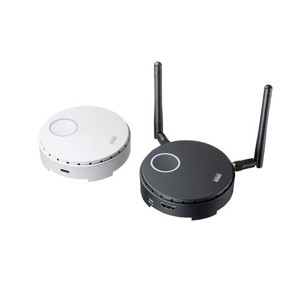 - USB3.1 Type-Cポートからケーブル1本でHDMI信号をワイヤレス送信し液晶テレビやプロジェクターから出力できる!送信機は64台まで増設できボタン1つで瞬時に切替出力も可能。<特長>●映像出力可能なUSB3.1/3.0 Type-Cポートを持つパソコンからケーブル1本でHDMI信号をワイヤレス送信し、離れた場所に設置した液晶ディスプレイやプロジェクターにワイヤレス出力することができます。※DisplayPort Alternate Mode対応のUSB3.1 Type-Cポートを持つ機種に限ります。 ●USB3.1 Type-Cポートからの給電(5V/900mA)で動作するためノートパソコンやタブレットパソコンなどを使用した会議システム・プレゼンテーション環境に最適です。※送信機のみUSB3.1 Type-Cポートからの給電で動作します。受信機は同梱ACアダプタからの給電が必要です。 ●送信機と受信機はペアリング済みなので接続するだけで相互リンクを開始します。ソフトウェアなど面倒な設定は不要です。●簡単なペアリング操作で別売りの送信機(単品)を最大64台まで追加することが可能です。またサンワサプライ製ワイヤレスHDMIエクステンダー「VGA-EXWHD6/6TX」との組み合わせも可能です。複数のHDMI機器をボタン一つで切り替えて次々にワイヤレス出力させることが可能です。●切り替え時間・切り替え表示は1秒以下で行われ、次の映像出力を待つことなくスムーズに会議やプレゼンテーションを行えます。※映像表示時間は平均1秒以下(HDMI機器が常時映像出力状態にある場合に限る)。ただし全ての機器での動作を保証するものではありません。 ●送信機側のボタン操作で延長出力表示を一時的にOFFにする機能を搭載しています。プレゼン時など不必要な表示をしたくない場合などに便利な機能を搭載しています。※表示OFF時は本製品のデフォルト画面がテレビ・プロジェクターに表示されます。●USB3.1 Type-Cポートから出力されたHDMI画像信号と同時に高音質な音声信号もワイヤレスで延長できます。 ●HDCP(High-bandwidth Digital Content Protection)対応製品です。※ディスプレイ、出力機器もHDCPに対応している必要があります。 ●日本国内で使用するための技術基準適合証明(TELEC認証)取得済みです。<ご注意>※本製品は同一空間内(約200平方メートル)での同時使用セット台数について最大4セットまで同時使用できる性能を有していますが、接続機器・電波環境により動作結果が大きく異なります。複数セット同時使用については動作保証外とさせて頂きます。※隣接する部屋同士で本製品を使用していた場合、電波が干渉する距離範囲内の場合は正常に動作しないことがあります。その際はいずれかの製品のご使用を停止してください。※本製品は送信機・受信機が個々にペアリングされるため、ペアリング外の機器と混信することはありません。※すべての機器での動作を保障するものではありません。<サンワサプライ製ワイヤレスHDMIエクステンダー/VGA-EXWHD6/6TXとの組み合わせについて>VGA-EXWHD6C/6CTXとVGA-EXWHD6/6TXは互換性があります。受信機はどちらも共通の製品です。VGA-EXWHD6の環境(HDMI接続)の中にVGA-EXWHD6C(Type-C接続)を混ぜて使用することが可能です。<仕様>■対応表示解像度:1920×1080、1680×1050、1440×1050、1440×900、1360×768、1280×768、1280×720、1184×666、1024×768、960×600、800×600 ■伝送距離:最大15m(障害物なし) ※ご使用環境により異なります。 ■HDCP:対応※ディスプレイ、出力機器もHDCPに対応している必要があります。 ■使用周波数帯域:5.1GHz〜5.25GHz ■インターフェース:送信機/USB Type-Cコネクタ メス×1受信機/HDMIタイプA(19pin)メス×1■増設台数:送信機/最大64台まで(受信機1台に対し送信機を最大64台まで増設可能)受信機/増設不可■同一空間内使用台数:受信機N台+送信機を1セットとし200平方メートル内に最大4セットまで※動作保証外。 ■機器間制御:CEC非対応 ■対応音声フォーマット:PCM ■映像遅延:100ms以内 ■ケース材料:ABS、PVC ■環境条件:動作時/0〜40℃ 湿度10%〜80%以下(結露なきこと)保管時/-10〜60℃ 湿度5%〜90%以下(結露なきこと)■サイズ:送信機/直径90×H25mm受信機/直径90×H25mm(突起・アンテナ含まず)■重量:送信機/約82g受信機/約100g■付属品:送信機×1、受信機×1、ACアダプタ(DC5V 1.5A・受信機用)×1、給電用USBケーブル(約150cm)×1、USB3.1/3.0 Type-Cケーブル(約18cm)×1、HDMIケーブル(約60cm)×1、アンテナ×2、ベルクロストラップ×1、ブラケット×1、ネジ×4、取扱説明書×1 ■メーカー保証:1年■対応機器:USB3.1 Gen1(USB3.0)Type-Cポート(DisplayPort Alternate Mode対応)を標準装備しているWindows搭載(DOS/V)パソコンThunderbolt3(USBType-C)ポートを持うApple Macシリーズ ■対応入力機器:HDMI入力端子を標準搭載しているテレビ・パソコン用ディスプレイ・プロジェクターなど<関連キーワード>VGA-EXWHD6C サンワサプライ 4969887593868