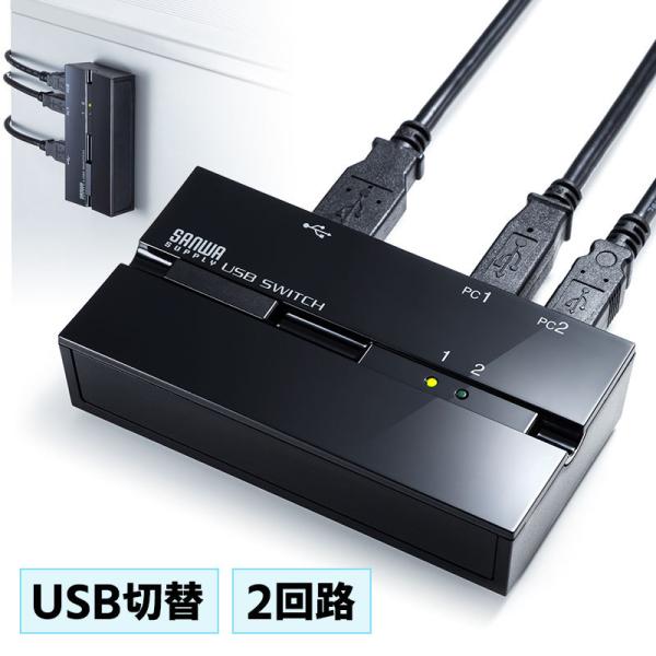 - 2台のパソコンで1台のUSB2.0機器を切替えて共有でき、強力マグネットでスチール面にしっかり固定できるUSB2.0切替器。2台のパソコンで1台のUSB2.0機器を切り替えて共有できます。USB2.0のハイスピード(480Mbps)に対応した切替器です。ボタンスイッチで簡単に2台のパソコンを切替できます。切替先が一目で分かるLEDを搭載。強力マグネットを搭載しスチール製デスクやキャビネットなどにしっかり固定できます。接続ケーブルはすべて同一方向にでており綺麗に配線することが可能です。USB2.0に対応したプリンタなどの周辺機器を共有するのに最適。検索キーワード:SANWA SUPPLY | さんわさぷらい | 切替器 |