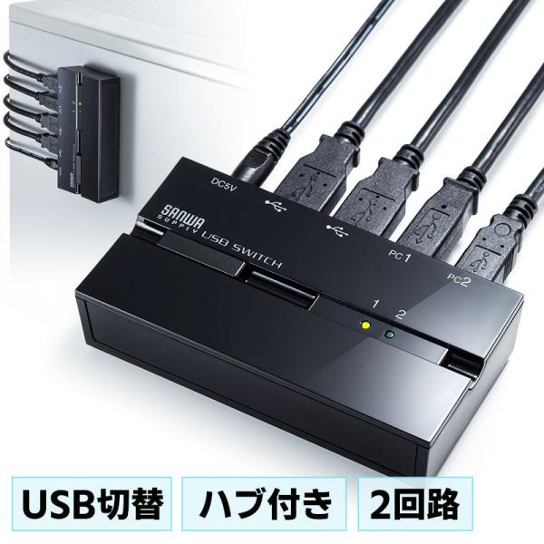 - 商品詳細2台のパソコンで2台のUSB2.0機器を一括切替えで共有でき、強力マグネットでスチール面にしっかり固定できるUSB2.0ハブ付き切替器。特長●2台のパソコンで2台のUSB2.0機器を切り替えて共有できます。●USBハブポート(2ポート)を一括で切り替えられるのでUSBキーボードやUSBマウスなどの切り替え共有に最適です。●USB2.0のハイスピード(480Mbps)に対応した切り替え器です。●ボタンスイッチで簡単に2台のパソコンを切り替えできます。●切り替え先が一目で分かるLEDを搭載しています。●強力マグネットを搭載しスチール製デスクやキャビネットなどにしっかり固定できます。●接続ケーブルはすべて同一方向にでており綺麗に配線することが可能です。●壁面に取り付けが可能です。仕様■対応規格:USB仕様Ver 2.0準拠■コネクタ形状:USB Aコネクタ メス×2(周辺機器側)USB Bコネクタ メス×2(パソコン側)■切替内容:パソコン2 : 周辺機器2■切替方式:本体切替ボタン■環境条件:動作温度/0℃から40℃保存温度/0℃から60℃動作湿度/湿度0から80%RH(結露なきこと)■サイズ:外寸/W105×D56×H25mm■重量:約88g■セット内容:本体×1、USB2.0対応USB接続ケーブル(1.8m)×1本、ACアダプタ(5V/1A)、取扱説明書対応機種■対応機種:Windows搭載(DOS/V)パソコン、Apple Macシリーズ※USBポートを持ち、パソコン本体メーカーがUSBポートの動作を保証している機種。(USB1.1対応のUSBポートに接続した場合は、USB1.1の転送速度(1.5から12Mbps)にのみ対応します)※USB2.0の環境で動作させるためにはパソコン本体にUSB2.0ポートが必要です。■対応OS:Windows 11・10・8.1・8macOS(Sequoia)15、macOS(Sonoma)14、macOS(Ventura)13、(Monterey) 12、macOS(BigSur) 11、macOS 10.12から10.15表示された検索窓に商品番号を入力してください【 商品番号:SW-US22HMG 】【2021年07月登録】関連キーワード:切替機 切り替え 切替器 セレクタ セレクター サンワサプライ 4969887594414⇒こちらの商品のレビューを、もっと読みたい方はこちら
