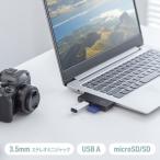 - 商品詳細USB-C対応機器へ直挿し可能なSD/microSDカードリーダー付きUSBハブ。USB Aが1ポート、3.5mmイヤホンジャック付き。スマホやタブレットでの使用に最適。アルミ製ボディ。ブラック。特長●USB Type-Cコネクタを直接挿すだけで使えるカードリーダーです。●Type-Cポートを搭載したスマートフォン、タブレット、ノートパソコンなどで使用できます。●USB 5Gbpsのスーパースピードモード(規格値5Gbps)に対応した高性能なカードリーダーです。●カードリーダーとしてだけでなく、各種USBデバイスやオーディオ機器の接続にも対応しています。●コンパクトで持ち運びに便利なサイズです。●SDXCメモリーカード1TB(UHS-I・UHS-II)に対応しています。※UHS-IIの高速転送には対応していません。●多くのスマートフォンで使われているmicroSDカードなど、小型メディアにもそのまま対応しています。仕様<PC接続端子>■コネクタ形状:USB Type-C■対応規格:USB 5Gbps(USB3.2 Gen1/3.1 Gen1/3.0)準拠■ケーブルタイプ:コネクタ一体型<USBポート>■ポート数:1ポート■最大データ転送速度:5Gbps(理論値)■USB Aメス/USB 5Gbps:1ポート<カードリーダー>■スロット:SDメモリーカード、microSDカード■対応メディア規格:SDXC、SDHC、SD、microSDXC、microSDHC、microSD■最大対応メディア:SDカード/1TBmicroSDカード/1TB<電源>■電源供給方式:バスパワー<共通仕様>■セット内容:製品本体、取扱説明書、保証書■ドライバ:不要■サイズ:約W76.6×D12.1×H39mm■重量:約26g■ジャック形状:3.5mm 4極ミニジャック×1対応機種■対応機種:Windows搭載(DOS/V)パソコンApple MacシリーズiPad、iPhoneChrome OS搭載パソコンAndroidタブレット・スマートフォン※USBポート(Type-Cメス)を持ち、パソコン本体メーカーがUSBポートの動作を保証している機種。※パソコン・USB機器により対応できないものもあります。※全ての機器での動作を保証するものではありません。■対応OS:Windows 11、10、8.1、8、7macOS(Sequoia)15、macOS(Sonoma)14、macOS(Ventura)13、macOS(Monterey)12、macOS(BigSur)11Android 10から15iPadOS 15から18iOS 15、16、17、18ChromeOS表示された検索窓に商品番号を入力してください【 商品番号:ADR-5TCSD2BK 】【2025年08月登録】関連キーワード:コンセント おすすめ 長期保存 データ移行 写真移動 アイホン 簡単 写真データ 携帯 メモリー 動画保存 USBカードリーダー マイクロSDカードリーダー サンワサプライ 4969887596098表示された検索窓に商品番号を入力してください【 商品番号:ADR-5TCSD2BK 】⇒こちらの商品のレビューを、もっと読みたい方はこちら