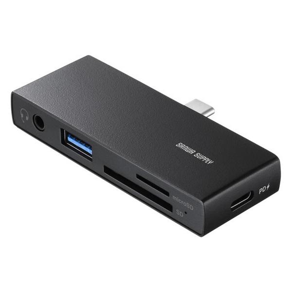 - 商品詳細USB-C対応機器へ直挿し可能なSD/microSDカードリーダー付きUSBハブ。USB PD 100W充電に対応。USB AとUSB-Cが1ポート、3.5mmイヤホンジャック付き。スマホやタブレットでの使用に最適。アルミ製ボディ。ブラック。特長●USB Type-Cコネクタを直接挿すだけで使えるカードリーダーです。●Type-Cポートを搭載したスマートフォン、タブレット、ノートパソコンなどで使用できます。●USB 5Gbpsのスーパースピードモード(規格値5Gbps)に対応した高性能なカードリーダーです。●USB PD対応でUSB Type-Cポートを使って機器を充電することができます。※PD対応機器である必要があります。●カードリーダーとしてだけでなく、各種USBデバイスやオーディオ機器の接続にも対応しています。●コンパクトで持ち運びに便利なサイズです。●SDXCメモリーカード1TB(UHS-I・UHS-II)に対応しています。※UHS-IIの高速転送には対応していません。●多くのスマートフォンで使われているmicroSDカードなど、小型メディアにもそのまま対応しています。仕様<PC接続端子>■コネクタ形状:USB Type-C■対応規格:USB 5Gbps(USB3.2 Gen1/3.1 Gen1/3.0)準拠■ケーブルタイプ:コネクタ一体型<USBポート>■ポート数:2ポート■最大データ転送速度:5Gbps(理論値)■USB Type-Cメス/USB 5Gbps:1ポート■USB Aメス/USB 5Gbps:1ポート<カードリーダー>■スロット:SDメモリーカード、microSDカード■対応メディア規格:SDXC、SDHC、SD、microSDXC、microSDHC、microSD■最大対応メディア:SDカード/1TBmicroSDカード/1TB<電源>■電源供給方式:バスパワー■USB PD入力ポート:あり■USB PD最大入力:100W<共通仕様>■セット内容:製品本体、取扱説明書、保証書■ドライバ:不要■サイズ:約W76.6×D12.1×H39mm■重量:約26g■ジャック形状:3.5mm 4極ミニジャック×1対応機種■対応機種:Windows搭載(DOS/V)パソコンApple MacシリーズiPad、iPhoneChrome OS搭載パソコンAndroidタブレット・スマートフォン※USBポート(Type-Cメス)を持ち、パソコン本体メーカーがUSBポートの動作を保証している機種。※パソコン・USB機器により対応できないものもあります。※全ての機器での動作を保証するものではありません。■対応OS:Windows 11、10、8.1、8、7macOS(Sequoia)15、macOS(Sonoma)14、macOS(Ventura)13、macOS(Monterey)12、macOS(BigSur)11Android 10から15iPadOS 15から18iOS 15、16、17、18ChromeOS表示された検索窓に商品番号を入力してください【 商品番号:ADR-5TCSDP3BK 】【2025年08月登録】関連キーワード:コンセント おすすめ 長期保存 データ移行 写真移動 アイホン 簡単 写真データ 携帯 メモリー 動画保存 USBカードリーダー マイクロSDカードリーダー サンワサプライ 4969887596104表示された検索窓に商品番号を入力してください【 商品番号:ADR-5TCSDP3BK 】⇒こちらの商品のレビューを、もっと読みたい方はこちら