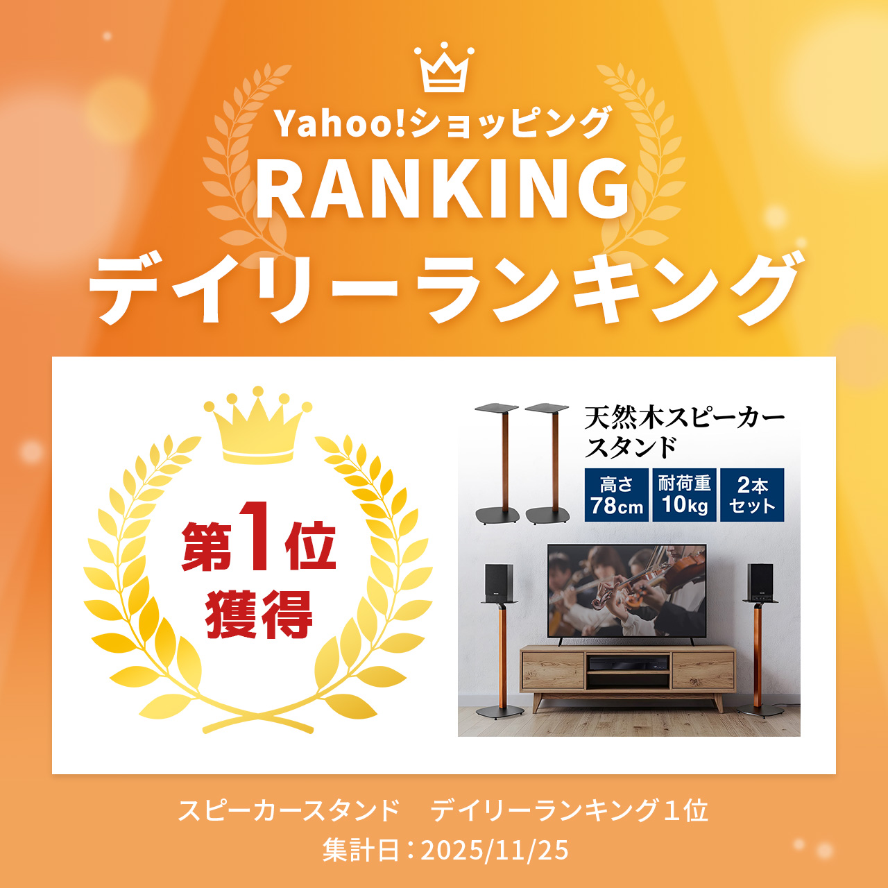 - スパイク型アジャスターによって音質を引き出す、木目調のデザインのスピーカースタンド。地面に直接設置するフロアスタンドタイプ。テレビの横やデスクの横に最適なサイズ。高さ約78〜79.7cm。耐荷重約10kg。ブラック&木目デザイン。<特長>●スパイク型アジャスターによって音質を引き出す、天然木スピーカースタンドです。●スピーカーを耳に近い高さに配置することで、高音域などをクリアにして正確な音を伝えることができます。●高さは約78cm、スパイク型アジャスターを付けた場合は約79.7cmで、テレビと並べてちょうどいい高さです。●スピーカーを載せる天板部分は23×23cmのサイズで、幅広い大きさの機器を設置可能です。●耐荷重は各約10kgもあるので重めのスピーカーも載せることができます。●底面が平坦な通常のアジャスターと、先端が尖ったスパイク型アジャスターの2種類付属しています。 スパイク型アジャスターは先端を尖らせることで地面への接地面積を減らし、振動を制御することで音の純度を高めます。 ※スパイク型アジャスターは先端が尖っているため床を傷つける恐れがあります。 市販のスパイク受けなどをご使用いただくか、カーペットの上などでご使用ください。●シリコンパッドはスピーカーの滑り止めとしてだけでなく振動を吸収し、ノイズを低減します。●フロアスタンドタイプなので、テレビの横やソファの横、デスクの横にも最適です。●背面には美しく配線できるケーブル通し付きです。●インテリアに馴染むブラック&天然木デザインです。●美しく丈夫なブナの天然木を採用。強度や耐久性に優れ家具や建築材など幅広く使用されています<仕様>■製品サイズ:約W33.8×D33.8×H78〜79.7cm■天板サイズ:約23×23cm■ケーブル通し穴サイズ:約0.6cm■重量:各5.11kg■総耐荷重:各10kg■高さ:78cm/79.7cm(スパイク使用時)■材質:天然木(ブナ材)+スチール+エポキシ樹脂粉体塗装■出荷形態:ノックダウン組立式(お客様組み立て)※組み立てにはプラスドライバーが別途必要となります。■付属品:アジャスター×8個、スパイク型アジャスター×8個■生産地:中国■保証期間:初期不良のみ■取扱説明書:日本語取扱説明書有り※スパイク型アジャスターによって床などに傷がついた際の補償はいたしかねます。※音質の向上を確約するものではございません。予めご了承ください。<関連キーワード>スピーカースタンド 木目調デザイン 耐荷重10kg 高さ78cm スパイク型アジャスター付き ペア 2本セット 金属製 フロアスタンド ブラック&木目 100-SPSTN07M サンワサプライラインナップ高さ81〜107cm高さ85〜126cm高さ110.5〜179cm高さ56〜100cm高さ56〜100cm高さ78cm
