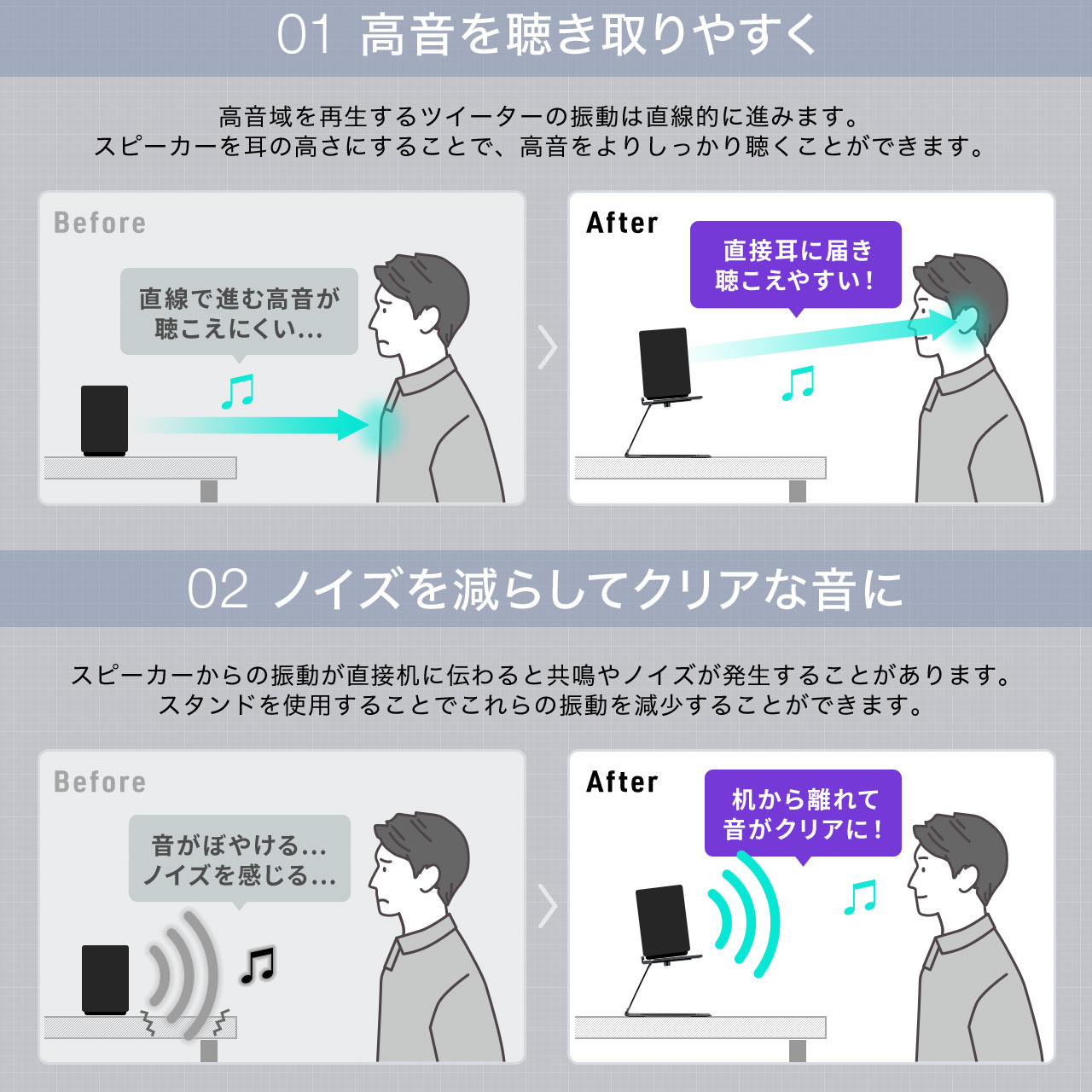 ・スピーカーの高さを上げて、聞き取りやすさアップ