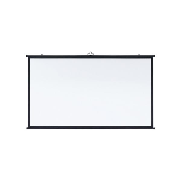 シンプルな壁掛け仕様のプロジェクタースクリーン。アスペクト比16:9・80型相当。オプションの三脚にも対応。