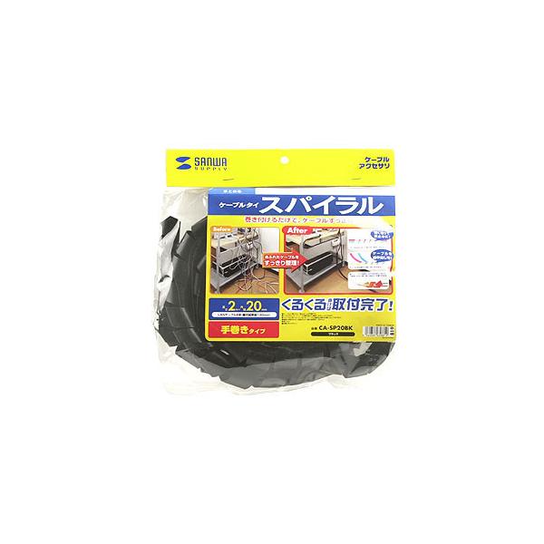 サンワサプライ ケーブルタイ 2m巻き・内寸直径20mm(スパイラル・ブラック) CA-SP20BK 返品種別A