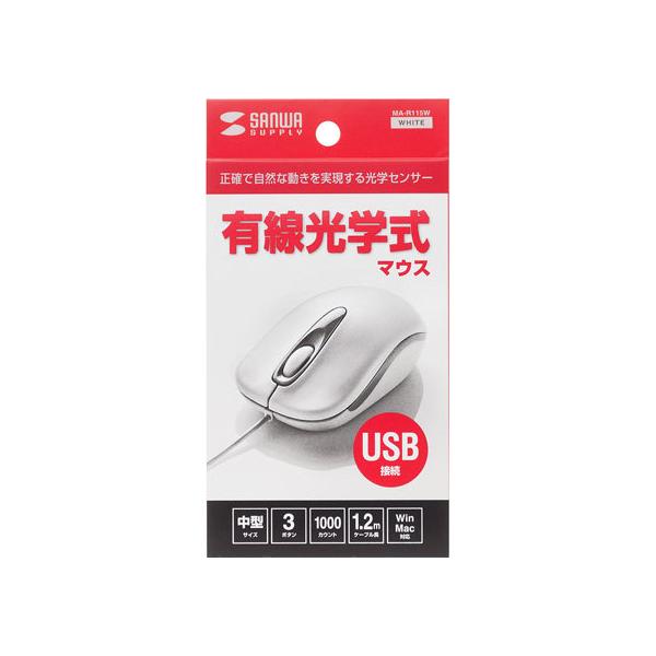 【お取り寄せ】サンワサプライ 有線光学式マウス(ホワイト) MA-R115W