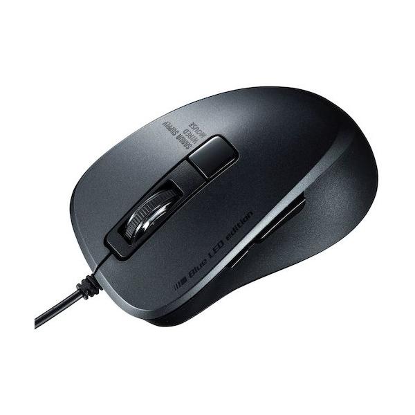サンワサプライ 静音有線ブルーLEDマウス(5ボタン) MA-BL156BK