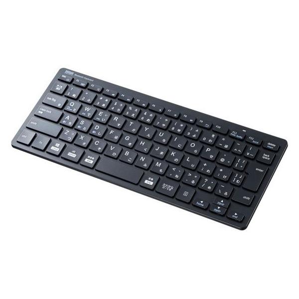 - 【商品解説】抗菌仕様。無駄を省いた薄型&コンパクトキーボード。「Bluetoothスリムキーボード」●パソコンやスマートフォンなど、Bluetoothを内蔵した機器とレシーバーなしで接続できます。●最薄部7mmの超薄型形状です。最厚部でも22mmで持ち運びや収納に便利です。●Windows、Android、macOS、iOSなど様々な機器で使用できます。●最大3台機器を登録でき、ボタンを押すだけで機器の接続を変更できます。●ノートパソコンと同じパンタグラフキー方式を採用しています。キーの形状はアイソレーションタイプで爪の引っ掛かりを軽減します。●キーボードの材質に抗菌剤を練り込んだJIS Z2801準拠の抗菌仕様です。●抗菌作用で大腸菌や黄色ブドウ球菌の繁殖を抑えます。●未使用時や持ち運びの時に誤入力を避ける電源スイッチ付きです。●テンキーなしでキーボード幅285mmのコンパクト設計です。●ボリューム調整などメディアプレイヤー操作時に便利なファンクションキーを搭載しています。【スペック】●型式:SKB-BT36BK(SKBBT36BK)●JANコード:4969887700341サイズ(H×W×D)mm:22x285x125mm本体重量:約190gキー数:82キー対応機種:Bluetoothモジュール内蔵のWindows搭載パソコン・タブレットmacOS搭載MacシリーズAndroid搭載スマートフォン・タブレットiOS搭載iPhoneシリーズ、iPadシリーズ対応OS:Windows 11・10・8.1・8・7macOS(Monterey)12、macOS(BigSur)11、macOS 10.12〜10.15Android 5〜12iOS 9〜15iPadOS 13〜15接続方法:ワイヤレスインターフェース:Bluetoothキー配列:日本語配列テンキー:テンキーなしキータイプ:パンタグラフキーストローク:2.0±0.3mmキーピッチ(mm):19mm付属品:取扱説明書、単四乾電池(テスト用)仕様1:[ワイヤレス方式]Bluetooth Ver5.1[プロファイル]HID(Human Interface Device Profile)[通信範囲]10m ※使用環境によって異なります。[送信出力]Class 2[動作力]60gこの商品は宅配便でお届けする商品です出荷可能日から最短日時でお届けします。※出荷完了次第メールをお送りします。配送サービス提供エリアを調べることができます「エリア検索」をクリックして、表示された画面にお届け先の郵便番号7桁を入力してください。ご購入可能エリア検索お買い上げ合計3,980円以上で送料無料となります。※3,980円未満の場合は、一律550円(税込)となります。●出荷可能日から最短日時でお届けします。(日時指定は出来ません。) ※お届け時に不在だった場合は、「ご不在連絡票」が投函されます。 「ご不在連絡票」に記載された宅配業者の連絡先へ、再配達のご依頼をお願いいたします。●お届けは玄関先までとなります。●宅配便でお届けする商品をご購入の場合、不用品リサイクル回収はお受けしておりません。●全て揃い次第の出荷となりますので、2種類以上、または2個以上でのご注文の場合、出荷が遅れる場合があります。詳細はこちら■商品のお届けについて商品の到着日については、出荷完了メール内のリンク(宅配業者お荷物お問い合わせサービス)にてご確認ください。詳しいお届け目安を確認する1度の注文で複数の配送先にお届けすることは出来ません。※注文時に「複数の送付先に送る」で2箇所以上への配送先を設定した場合、すべてキャンセルとさせていただきます。
