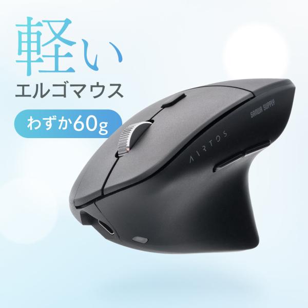 エルゴノミクスマウス ワイヤレス Bluetooth 軽量 大型 5ボタン 静音 充電式 無線 USB-Aレシーバー マルチペアリング 腱鞘炎予防 縦型マウス 400-MAWBT215