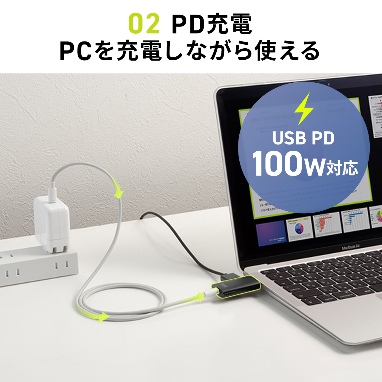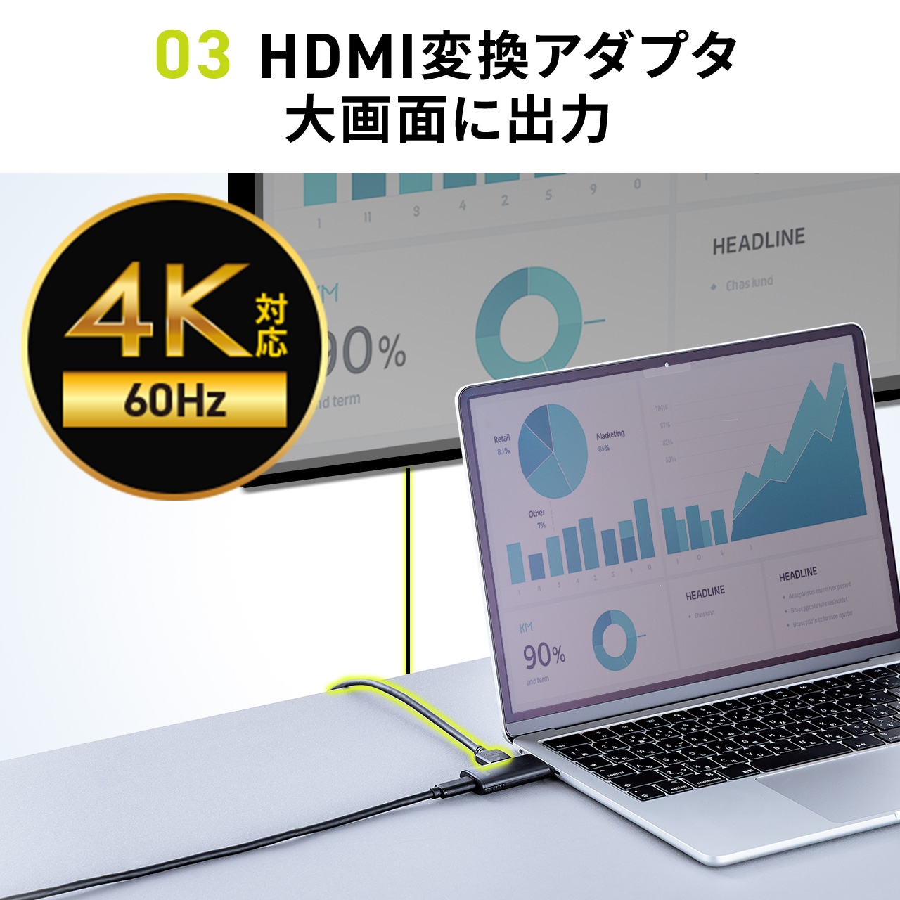 3-in-1多機能レシーバー付き、ワイヤレスプレゼンター。USB-C接続の3-in-1多機能レシーバーは、プレゼンターとの接続だけでなくHDMI変換アダプタ、100WまでのPD充電にも対応。シンプルなボタンで左クリックとページ送り/戻しなどに対応。既定の機能の割り当てが行え。面倒な乾電池交換が不要なUSB充電式。連続照射時間が約30時間。Windows/Mac対応。