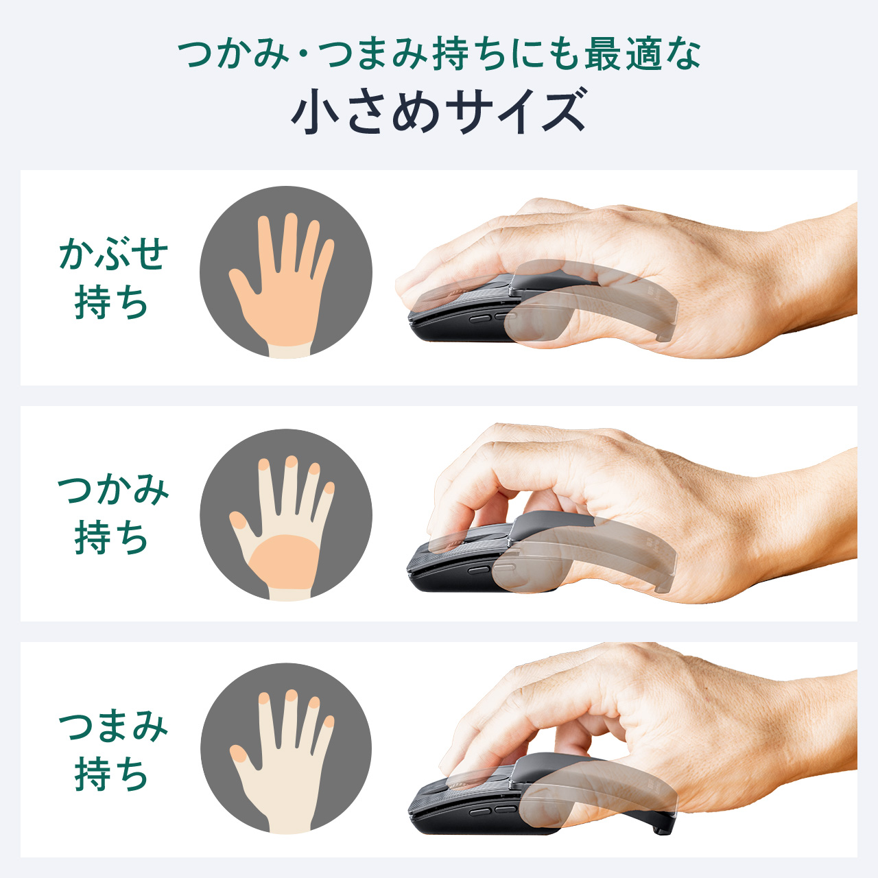 スライドカバーを閉じることで小さくなる静音Bluetoothマウス。高速スクロールに対応。超コンパクトにも関わらず戻る・進むボタンを搭載。持ち運びに便利なポーチ付き。【WEB限定商品】