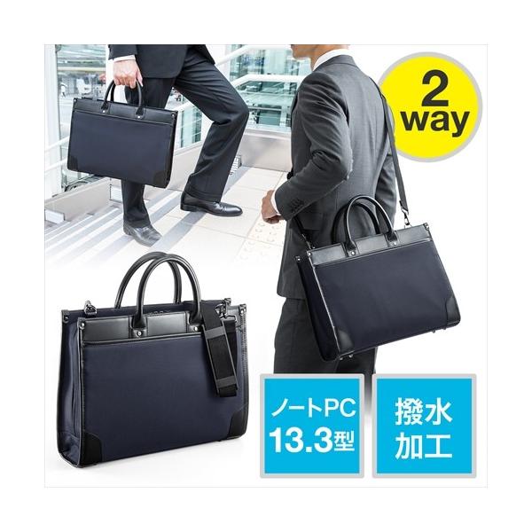 ビジネスバッグ 肩掛け ショルダー 2WAY メンズ レディース A4 パソコン13.3型収納対応 表面撥水加工 ネイビー 就活 タブレット収納 200-BAG110NV サンワサプライ