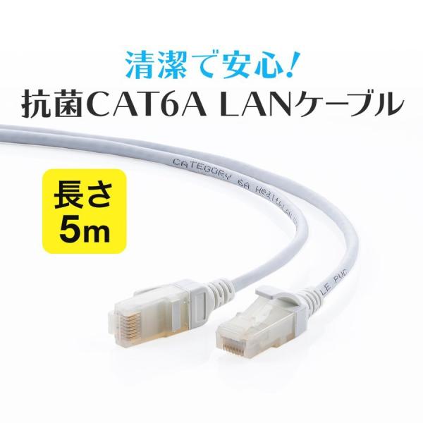 LANケーブル 抗菌 CAT6A カテゴリ6A カテ6A ランケーブル スリム 細径 より線 高速 通信 ケーブル UTP ツメ折れ防止 カバー付き コネクタ 5m 500-LAN6AKK-05