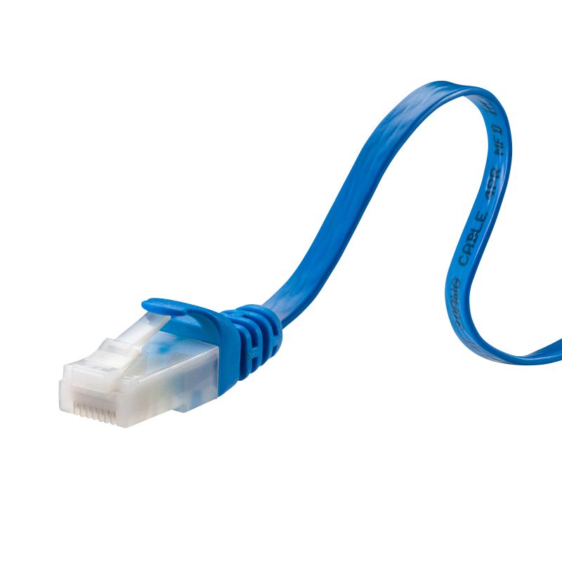 ツメ折れ防止コネクターで安心、厚さ1.5mmフラットタイプのギガビット対応カテゴリ6LANケーブル。ブルー・0.5m。