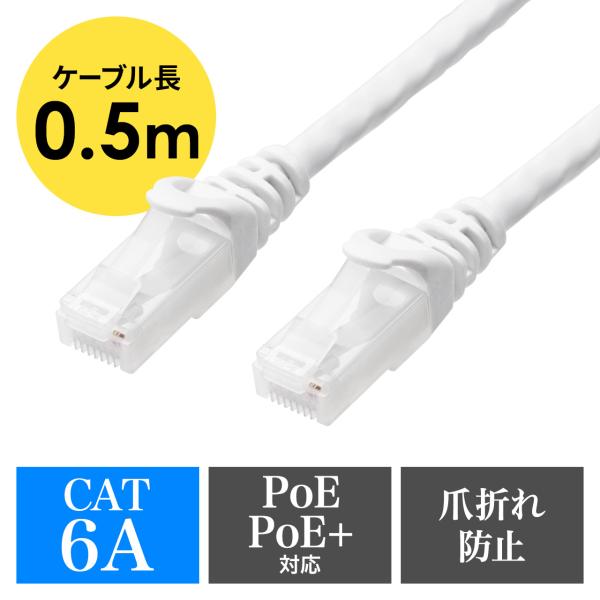 カテゴリ6A ツメ折れ防止LANケーブル 50cm ツメ折れ防止カバー 爪折れ ホワイト 柔らかツメ 500-LAN6AN-005W サンワサプライ