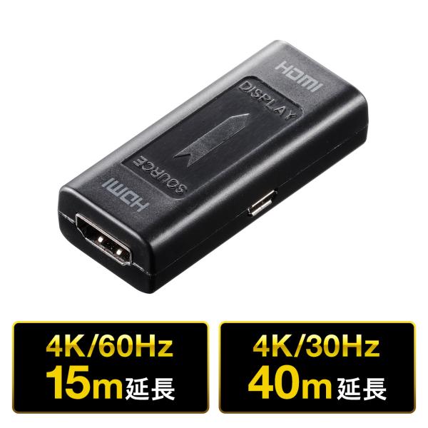 HDMI 延長 アダプタ コネクタ 中継 4K/60Hz 高解像度 対応 最長40m 15m 延長 伸ばす 500-HDMI016