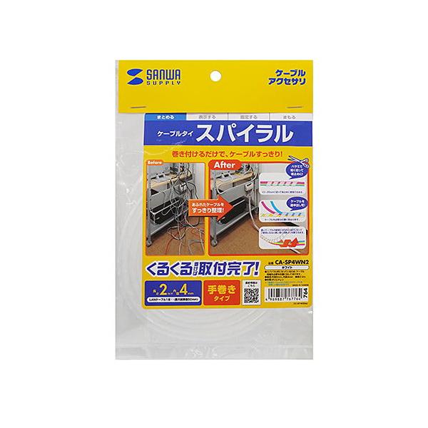 サンワサプライ ケーブルタイ(スパイラル・2m巻き・内寸直径4mm・ホワイト) CA-SP4WN2 返品種別A