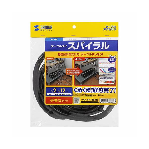 サンワサプライ ケーブルタイ(スパイラル・ブラック)2m巻き・内寸直径12mm CA-SP12BKN 返品種別A
