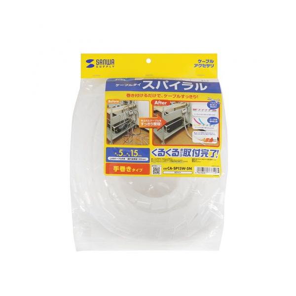 サンワサプライ ケーブルタイ(スパイラル・ホワイト)5m巻き・内寸直径15mm CA-SP15W-5N 返品種別A