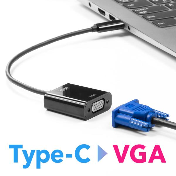 USB Type-C VGA 変換 アダプタ コネクタ ケーブル 20cm 会議 授業 モニター プロジェクター iPad Pro ノートPC スマホ 映像出力 画面 拡張 複製 500-KC040