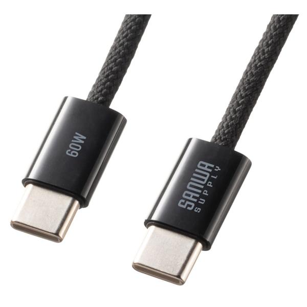 サンワサプライ Type-Cシリコンメッシュケーブル USB C to C PD60W対応 (1m・ブラック) KU-CCP60SM10BK 返品種別A