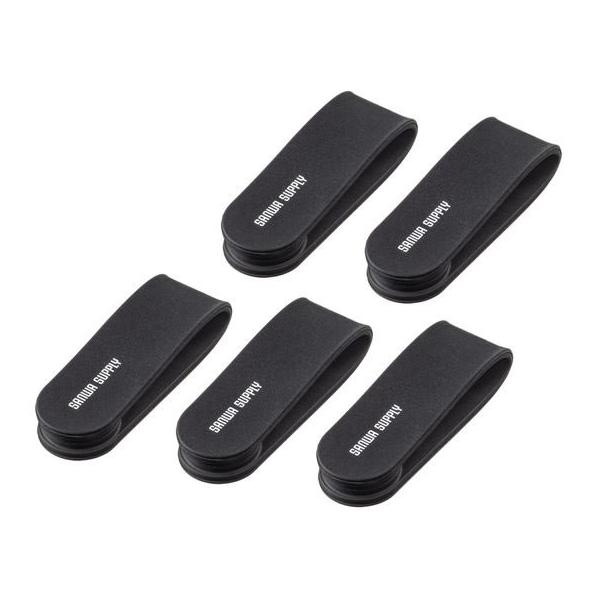 - 【商品説明】ケーブルを束ねたり、メモなどを固定できるクリップです。両端が磁石になっており、ワンタッチで留めることができます。フレキシブルな素材なので、スマホスタンドやメガネ置きなどにも使用できます。自宅や職場、学校など様々なシーンで使い分けが可能です。【仕様】●材質:シリコン ●サイズ:W120×D20×H2mm ●カラー:ブラック ●入数:5個 <ジェットプライス>