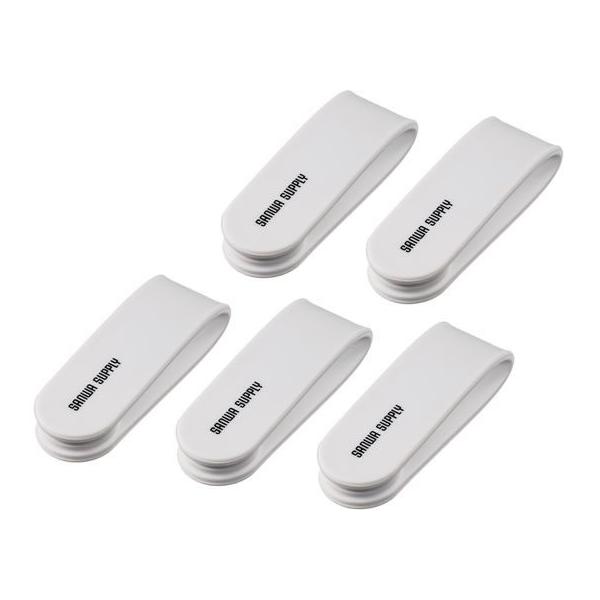 - 【商品説明】ケーブルを束ねたり、メモなどを固定できるクリップです。両端が磁石になっており、ワンタッチで留めることができます。フレキシブルな素材なので、スマホスタンドやメガネ置きなどにも使用できます。自宅や職場、学校など様々なシーンで使い分けが可能です。【仕様】●材質:シリコン ●サイズ:W120×D20×H2mm ●カラー:ホワイト ●入数:5個 <ジェットプライス>