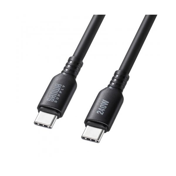 サンワサプライ USB2.0 Type-C シリコンケーブル(PD240W・2m・ブラック) KU-CCPES20BK