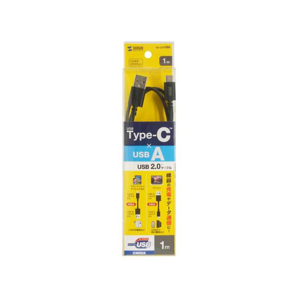サンワサプライ USB 2.0 Type-Cケーブル C-A 1m ブラック KU-CA10BK