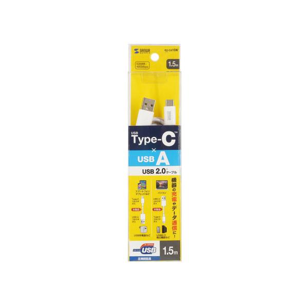 サンワサプライ USB 2.0 Type-Cケーブル C-A 1.5m ホワイト KU-CA15W