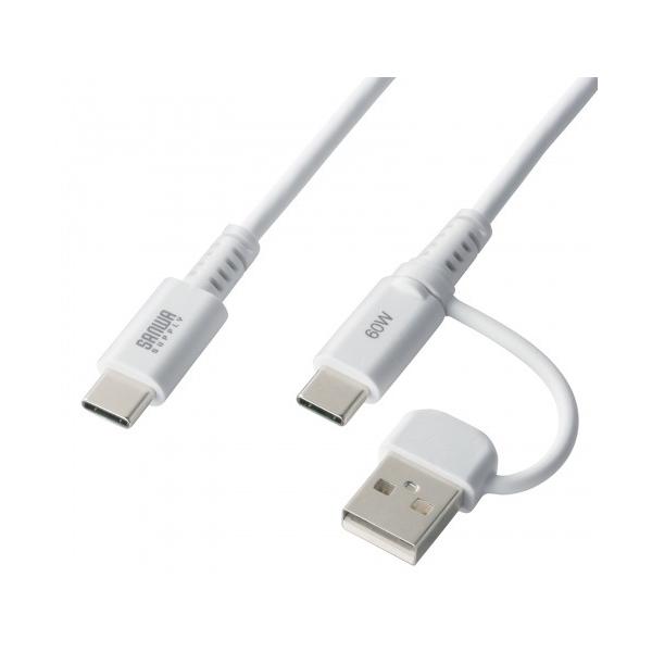 サンワサプライ USB2.0 Type-Cケーブル CtoA変換アダプタ付き PD60W対応 2in1 充電/通信対応 1m ホワイト KU-CCP60ACC10W