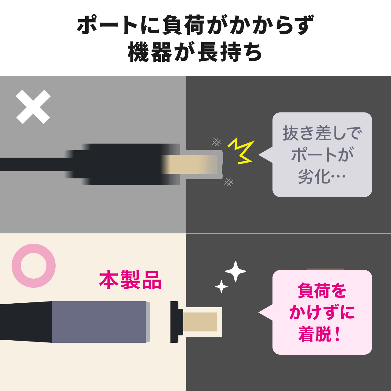 ・抜き差しの手間を省き、端子への負担や摩耗を軽減
