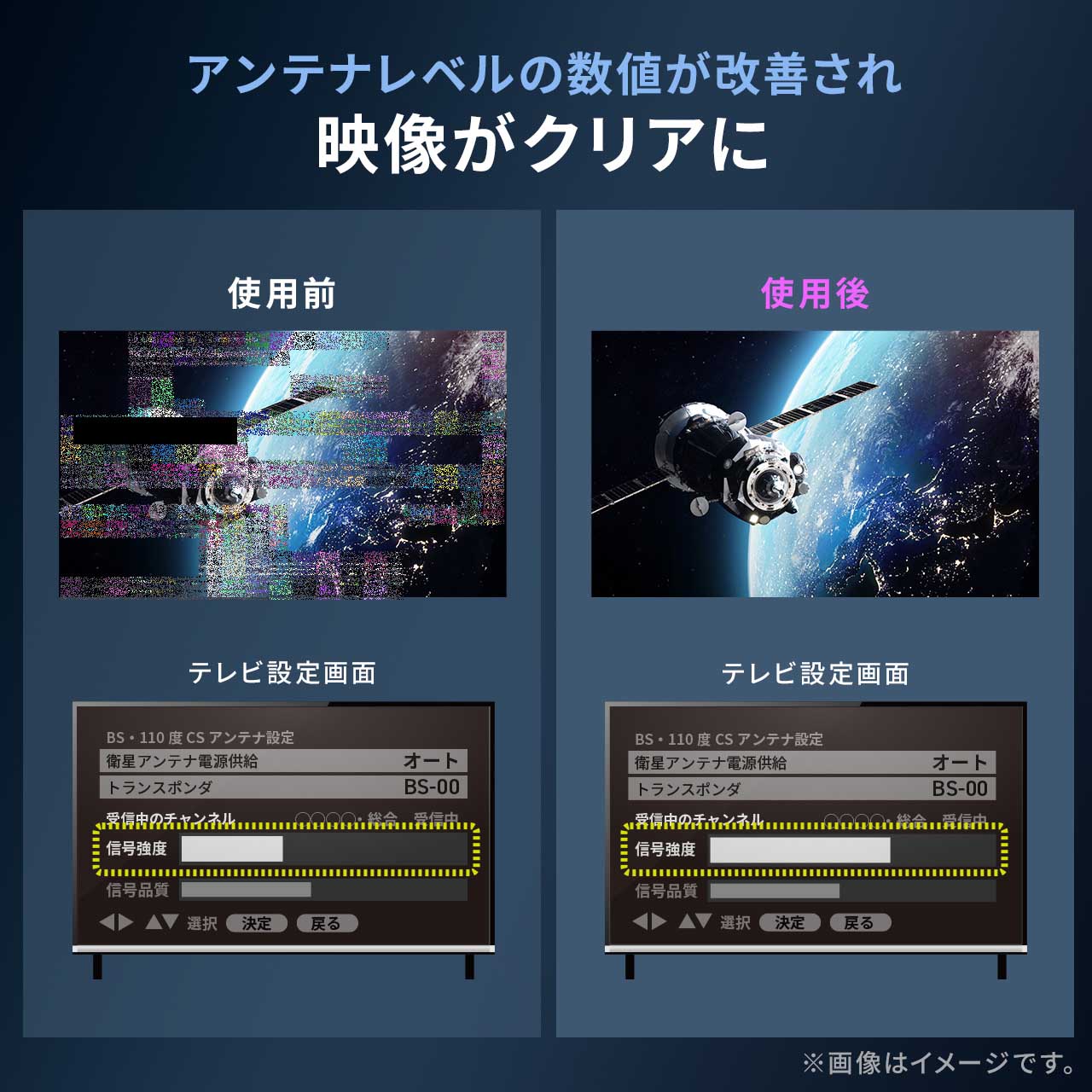 アンテナブースター BS/CS放送専用 テレビ ノイズ 軽減 対策 改善 アンテナレベル USB給電 小型 コンパクト 簡単設置 アンテナケーブル付属 500-AT007