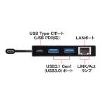 Type-CポートをLANポートに変換するLANアダプタ機能を搭載した持ち運びに便利な3ポートUSB3.1 Gen1ハブ。USB-3TCH20BK サンワサプライ