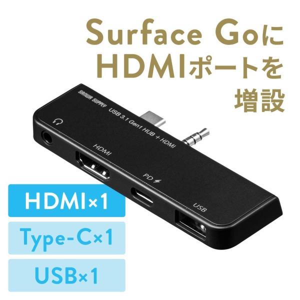 Surface Go 専用 Go3 USBハブ HDMI 増設 USB3.1 Gen1 USB3.0 ハブ サーフェス ゴー専用 Type-C USB-A 3.5mm 4極ミニジャック バスパワー 400-HUB073BK