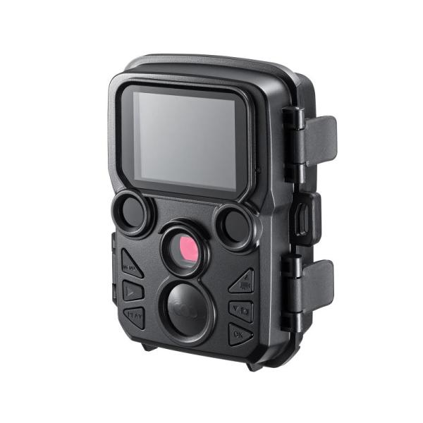 - ■商品特長 防犯や野生動物観察に適したセンサー内蔵カメラです。 従来品の半分以下のサイズでカメラが目立ちません。 高解像度4K撮影が可能です。 高輝度赤外線LEDを2灯内蔵しており、小型ながら約12m先まで照らすことができます。 スタンバイモードで最大6ヶ月待機できる省電力設定です。 夜間と昼間のモードはセンサーで自動的に切り替えます。 ※夜間はモノクロ撮影になります。 雨の中でも使用できるIP66防水設計です。 ※ACアダプタ使用時は防水効果はなくなります。 タイムラプス撮影(インターバル動画撮影)が可能です。 付属のACアダプタ(3m)を接続すると電池切れを気にすることなく使用できます。 ■仕様 対応記録メディア microSD(SDXC規格対応)/最大512GBまで対応 ※容量128GB以上のSDカードを推奨 電源 単三乾電池×4本またはACアダプタ(電池は別途ご用意ください) サイズ W74.6×D104×H43mm 重量 142g セット内容 固定用ベルト/ケーブル長約180cm、microUSBケーブル/ケーブル長約95cm、 ACアダプタ/3m、壁取り付け部品セット(固定用ブラケット×1、タッピングネジ×3、コンクリートアンカー×3、六角レンチ×1)