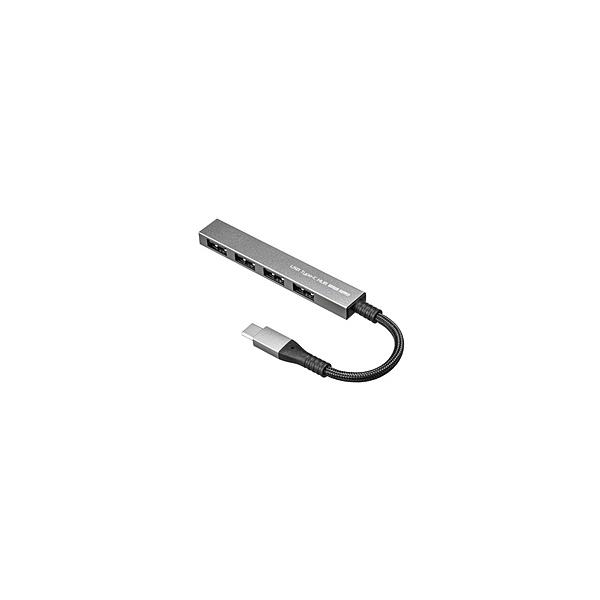 - USB Type-Cコネクタ搭載のUSB2.0機器を接続できる超スリムなUSBハブ。断線に強いメッシュケーブル。