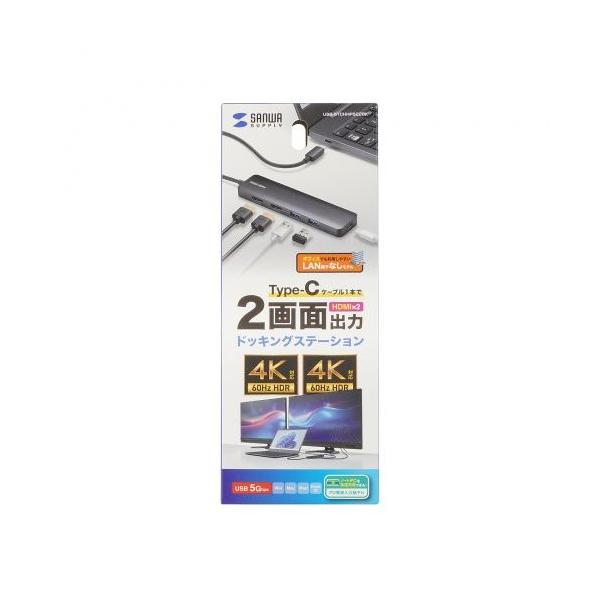 【最大4Kの解像度に対応し、2ポートのHDMI端子により最大2画面の映像出力ができるドッキングステーション。LAN端子なしタイプ。】 検索キーワード:サンワサプライ|SANWA SUPPLY 切替器/分配器|USB・IEEE1394ハブ メーカー型番:USB-5TCHHPS22BK USB5TCHHPS22BK