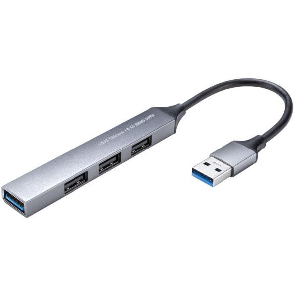 SANWA SUPPLY サンワサプライ USBハブ USB A(5Gbps)x1/USB A(USB2.0)x3 超スリムでコンパクト ケーブル一体型 アルミ筐体 USB-5H24GM