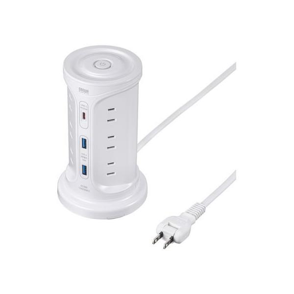 【お取り寄せ】サンワサプライ USB充電機能付きタワー型タップ TAP-B112C1A2W