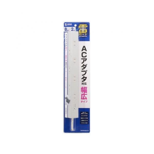- 【3Pプラグも差し込めるスリムタイプの雷ガード、マグネット付きタップ 雷ガード確認ランプ付き】 検索キーワード:サンワサプライ|SANWA SUPPLY ファシリティ関連|電源タップ メーカー型番:TAP-SPSLIM8N-2 TAPSPSLIM8N2