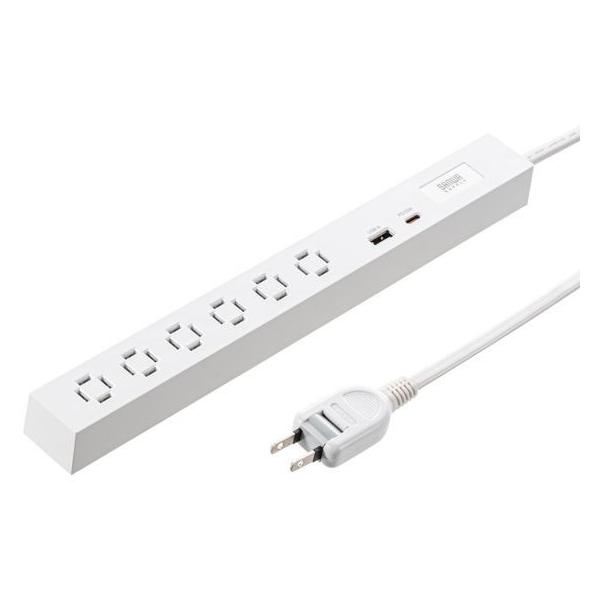 サンワサプライ スリムタップ 3m・ホワイト TAP-SLIM6UC-3W コード付き電源タップUSBポート付 電源タップ OAタップ 配線パーツ 家電