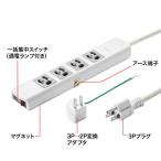 訳あり新品 電源タップ 抜け止め 3Pプラグ 4個口 3m 一括スイッチ ブレーカー内蔵 マグネット付 TAP-34MG-3 サンワサプライ 外装にキズ、汚れあり