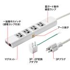抜け止め式、一括集中スイッチ付き&ブレーカー内蔵のマグネット付き雷ガードタップ。3P・4個口・3m。