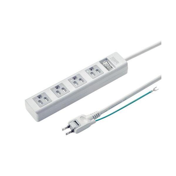 サンワサプライ TAP-SH3425MGSW ホワイト シャッター電源タップ 通電ランプ付き 4個口 2.5m