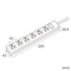 - 北海道・沖縄・離島へのお届けは別途送料がかかります。詳しくはこちらホコリ防止シャッター付き電源タップ。●外形寸法(幅)[mm]:45●外形寸法(奥)[mm]:29.6●外形寸法(高)[mm]:295●コンセント口数[個口]:6●定格:125V/15A/1500W●コード長:5m●色:ホワイト