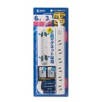 2面マグネット付きで、プラグを出す向き自由自在。雷ガード内蔵抜け止めタップ。2P・6個口・3m。