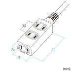 - 耐久性、耐寒性に優れた3個口タイプのスリムな電源延長ケーブルです。ケーブルは耐久性の高い、ソフトVCTケーブル(1.25平方ミリメートル)を採用しています。側面の1個口はアースピン付きプラグも差し込める構造になっています。用途はタップの延長や分岐、電動工具を使用する工事や、展示会の設営、工事現場に最適です。RoHS指令適合製品です。10物質基準値以下に対応しています。