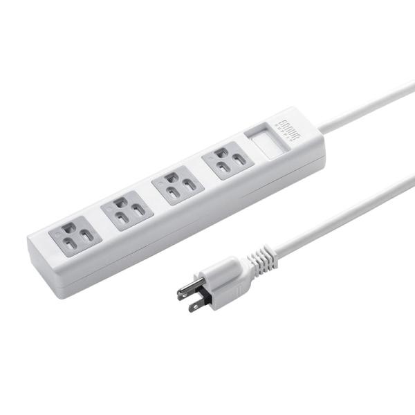 ホコリ防止シャッター、マグネット、通電ランプ付き2Pスイングプラグ仕様電源タップ。3P・4個口・2.5m。